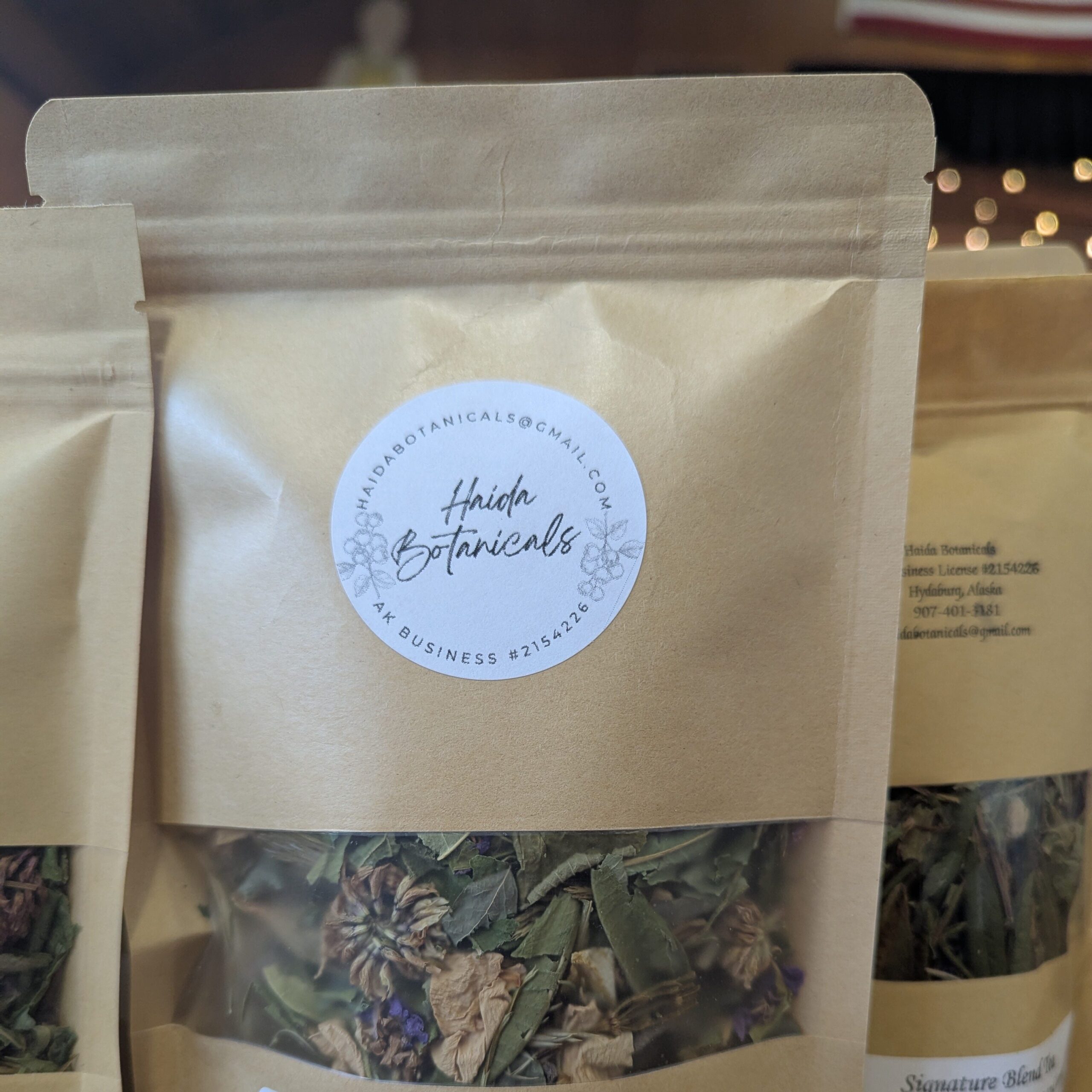 Haida Botanicals (Jennifer Mooney, Hydaburg): Jams, syrups, teas, and more made from sustainably harvested wild plants.