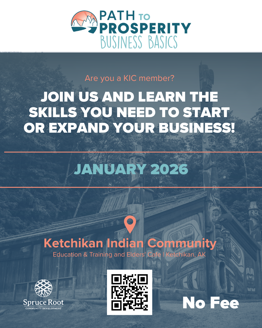 Spruce Root will offer an in-person Business Basics workshop in January 2026 in Ketchikan. Official event date coming soon!