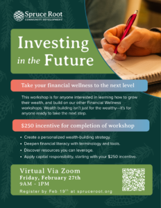 We welcome individuals who are looking to improve their overall relationship with money, build their credit, and build a healthier future for themselves and their families. This course will take place in-person and is open to all Southeast Alaska residents or Sealaska Shareholders outside of Southeast Alaska.